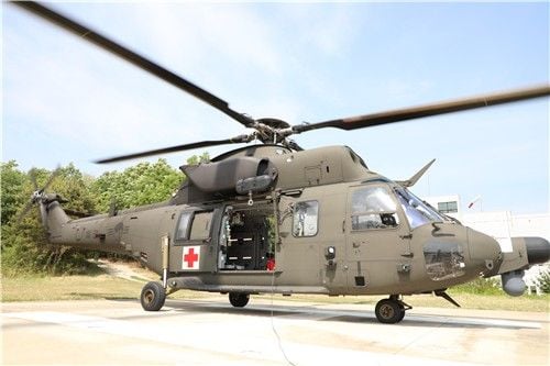 메디온은 한국형 기동헬기 수리온 KUH-1을 기반으로 2016년에 개발된 의무 후송 전용 기종이다. 방위사업청에 따르면 메디온은 기상 레이더와 보조 연료 탱크를 장착해 악천후 속에서도 임무를 수행할 수 있는 전천후 비행 능력을 갖췄다. 또 인공호흡기와 심실제세동기를 포함한 의료 장비를 탑재해 중증 환자 2명 또는 경증 환자 6명을 동시에 이송할 수 있다.