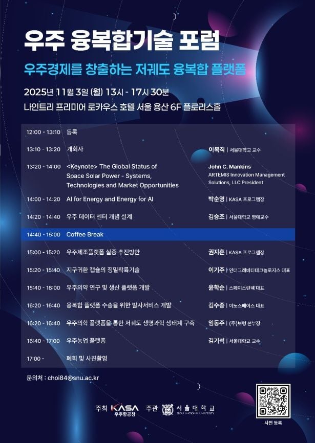 전문가들은 “우주 융복합기술의 사업화는 기존 지상산업 체계와 완전히 다른 공급망과 인프라, 국제 협력이 필수”라며 “기술·시장·정책이 원활히 맞물릴 때 비로소 우주경제의 실제 성장이 시작될 것”으로 내다보고 있다. 산업계는 이번 기술 논의가 실제 시장 안착에 얼마나 속도를 낼 수 있을지 주목하는 분위기다.