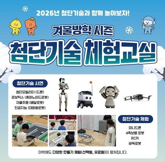 국립중앙과학관은 겨울방학을 맞아 2026년 1월 매주 토요일인 10일, 17일, 24일, 31일에 겨울방학 시즌 첨단기술 체험교실을 미래기술관 3층에서 운영한다고 밝혔다. 한 달 동안 매주 토요일 하루 3회씩 총 12회 진행하며, 회차별로 120분 동안 시연과 체험 프로그램을 연속 구성했다. 각 회차는 초등학생 100명을 대상으로 선착순 모집 중이고, 취소 인원에 한해 2일, 9일, 16일, 23일에 추가 신청을 받는다.