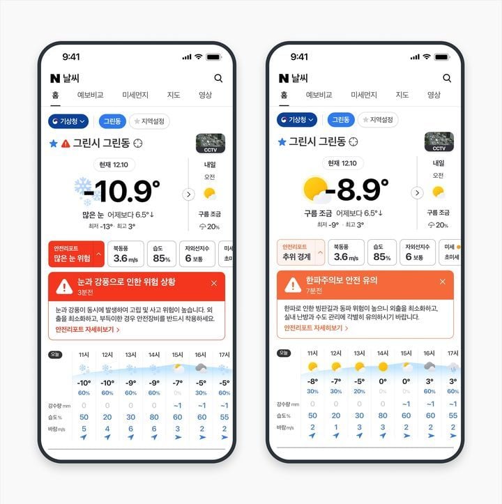 인공지능 기반 초단위 위험 분석 기술이 생활 밀착형 기상 안전 서비스로 확장되고 있다. 네이버가 날씨 플랫폼에 도입한 AI 안전리포트는 단순한 강수 예보를 넘어, 기후변화로 국지화·비정형화된 폭설과 호우 위험을 읍면동 수준에서 해석해 보여준다. 이용자는 기존의 “눈이 온다”는 정보 대신 “내가 사는 동네에 언제, 얼마나 쌓이고, 출근길 결빙이 얼마나 위험한지”를 확인할 수 있어, 산업계에서는 생활·도시 인프라 전반의 리스크 관리 패턴을 바꿀 수 있는 분기점으로 보고 있다.