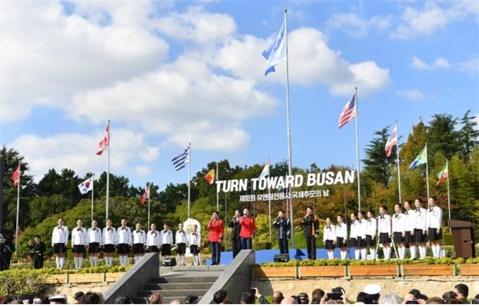 이날 유엔기념공원은 21발의 예포를 발사하며 유엔 참전용사들의 희생과 공헌을 상기시켰다. ‘턴 투워드 부산’으로 널리 알려진 이 행사는 6·25전쟁에 참전한 22개 유엔 참전국, 총 198만여 명의 숭고한 희생을 기리는 자리다. 2007년 캐나다 참전용사 빈센트 커트니가 제안했고, 국가보훈처가 2020년 공식 법정기념일로 지정해 오늘에 이르고 있다.