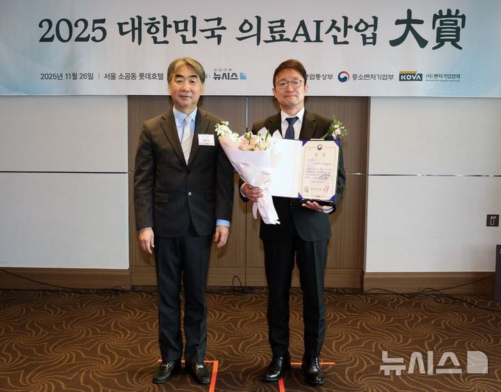 웨어러블 AI 진단 모니터링 기업 씨어스테크놀로지는 26일 서울 중구 롯데호텔에서 열린 2025 대한민국 의료AI 산업 대상 시상식에서 중소벤처기업부 장관상을 수상했다. 무선 웨어러블 의료기기와 AI 기술을 결합해 병원과 건강검진센터, 해외 전시회 등 다양한 현장에서 상용화 성과를 내고 있다는 점이 평가에 반영된 것으로 보인다.