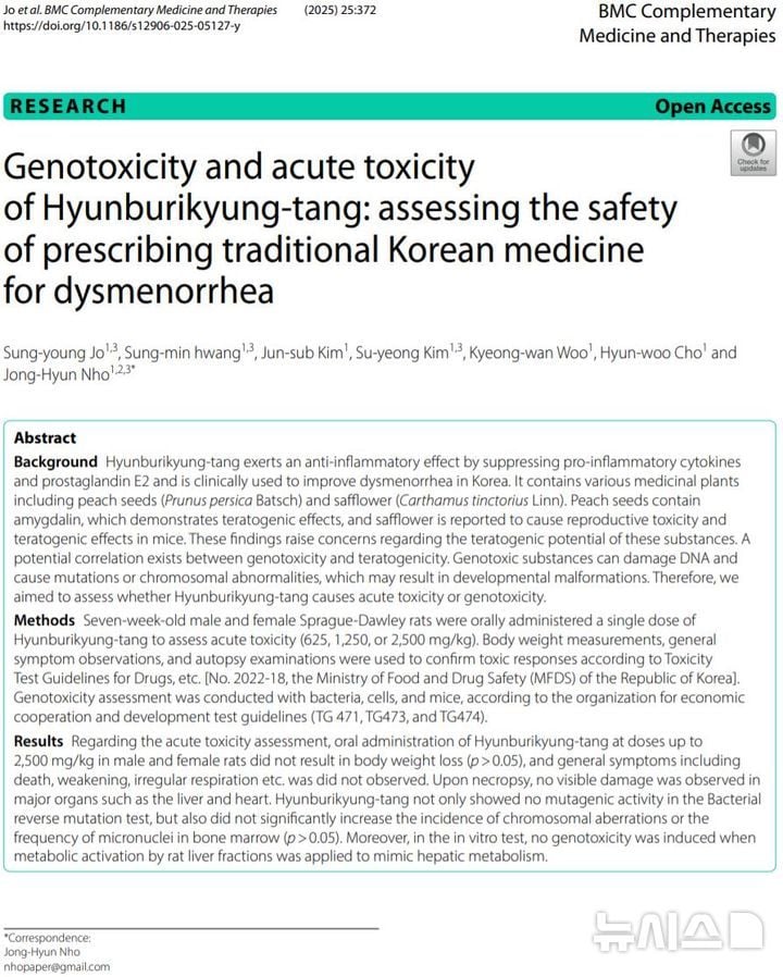 “생리통 첩약 현부이경탕, 안전성 검증”…한의약 신뢰 높인다