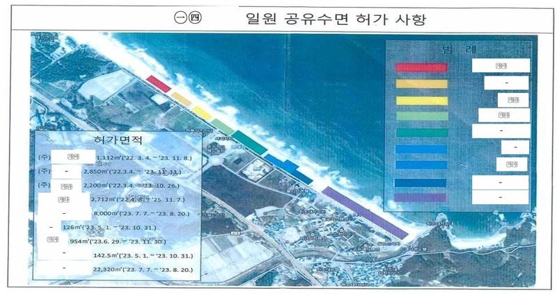 강원 양양군 해변 일부를 특정 업체들이 장기간 독점 사용해 지역 주민과 관광객들의 불편이 커졌다는 감사원 감사 결과가 발표됐다. 행정 절차상 미비와 법령 무시가 복합적으로 작용해 축구장 1.5배에 달하는 공유수면에 각종 건축물이 무분별하게 들어섰다는 지적이다.