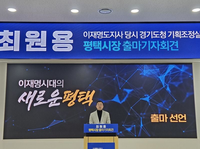 최원용 전 실장(59·더불어민주당)은 8일 평택시 송탄농협 대회실에서 비전선포식과 함께 기자회견을 열고 내년 평택시장 선거 출마를 공식 선언했다. 그는 경기남부 핵심 도시로서 평택의 위상을 높이겠다고 강조하며 지방행정과 중앙정치 경험을 전면에 내세웠다.