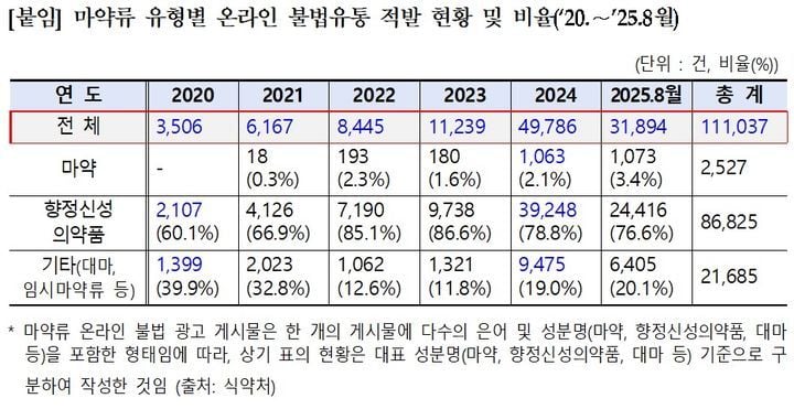 온라인 마약류 불법 유통이 폭발적으로 증가하는 가운데, 식품의약품안전처가 시범 운영 중인 인공지능(AI) 모니터링 시스템 ‘AI 캅스’가 텔레그램 등 폐쇄형 메신저에서는 실질적인 단속 효과를 거두지 못하는 것으로 드러났다. 2020년 3506건이던 마약류 온라인 불법유통 적발 건수는 2022년 4만9786건으로 14배 넘게 뛰었고, 올해도 8월까지 3만1894건이 적발됐다.