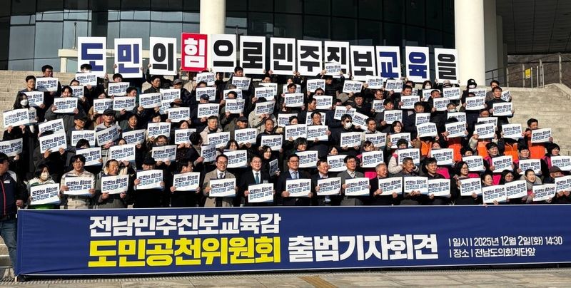 전국교직원노동조합 전남지부와 민주노총 전남본부 등 전남지역 교원·사회·노동단체는 2일 오후 전라남도교육청 앞에서 기자회견을 열고 민주진보교육감 도민공천위원회 출범을 선언했다. 이들은 내년 지방선거 전남도교육감 선거에서 단일 후보를 세워 김대중 전남도교육감과 맞대결에 나서겠다는 목표를 내놨다.