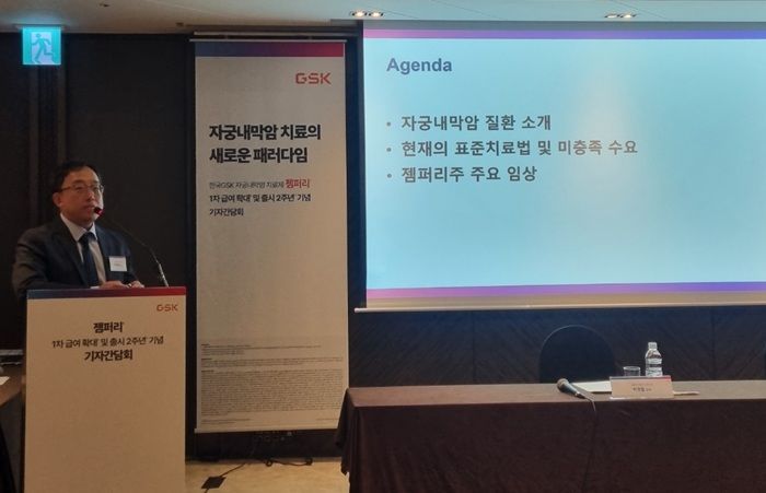 박정열 서울아산병원 산부인과 교수는 한국GSK가 1일 서울 플라자호텔에서 연 기자간담회에서 자궁내막암 치료 환경 변화를 짚으며 젬퍼리의 임상적 의의를 설명했다. 그는 국내 3대 부인암 가운데 자궁내막암 환자 증가세가 가장 가파르다는 점을 짚으며, 제한적이었던 기존 치료 전략에서 면역항암제가 새로운 표준치료로 자리잡고 있다고 강조했다.