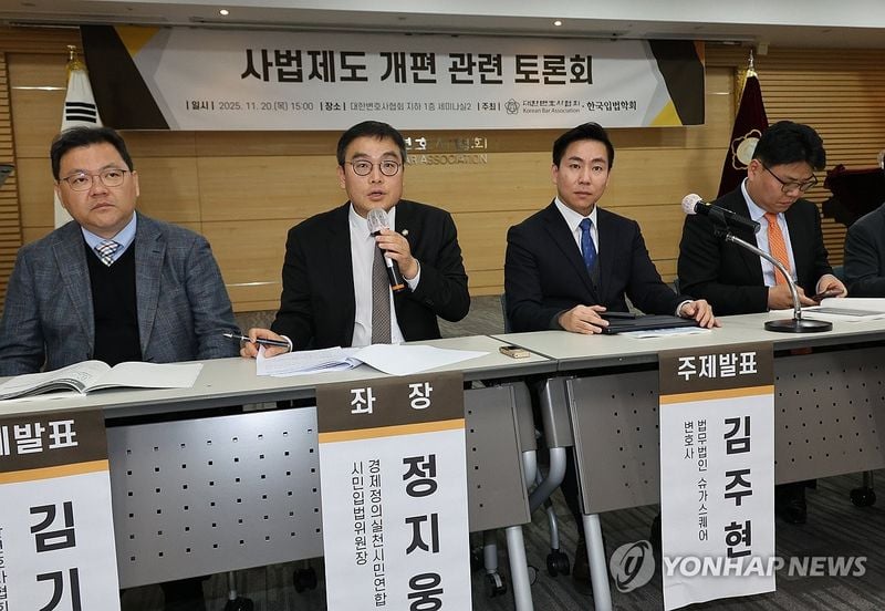 반면 발제를 맡은 대한변호사협회 측 인사들은 대법관 증원과 후보추천위원회 개선의 필요성을 강조했다. 김주현 변호사 대한변호사협회 제2정책이사는 이재명 대통령에 대한 대법원 전원합의체 파기환송 판결이 대법관 증원론의 계기가 됐다는 정치권 일각의 해석을 정면으로 반박했다. 그는 "사법개혁의 원인에 대한 몰이해를 야기하고 국민의 사법 불신에 대한 인식을 저하할 수 있다"고 말했다.