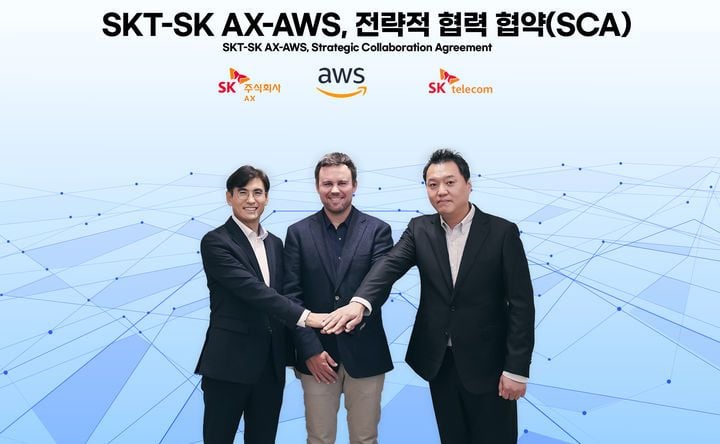 SK텔레콤과 SKAX는 27일 AWS와 전략적 협력 협약을 체결하고 AI 클라우드 분야 공동 공략에 나선다고 밝혔다. 세 회사는 AWS의 글로벌 클라우드 인프라와 AI 서비스, SK텔레콤의 통신·AI 기술, SKAX의 산업별 AI 구축·운영 경험을 결합해 통합형 AI 인프라와 서비스를 제공하는 것이 골자다. 협약 기간은 5년이며, 이 기간 AWS 기반 클라우드 인프라와 AI 서비스를 공급하면서 MSP 분야 경쟁력을 끌어올린다는 전략이다.