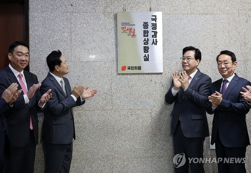 10일, 국민의힘은 국정감사 종합상황실 현판 제막식을 열고 본격적인 ‘민생 국감’ 모드로 돌입했다. 장동혁 대표는 상황실 현장에서 “이재명 정부가 잘하는 게 민생을 살피지 않는 것 딱 하나”라며 “여당보다 유능한 야당임을 보여주고, 의원 107명 모두 민생 싸움꾼이 되겠다”고 강조했다. 이와 함께 송언석 원내대표도 국회 대책회의에서 “국감 기조는 독재를 저지해 내 삶을 지키는 것”이라고 밝히며, “특검과 무차별 정치 보복, 정부 조직 개편의 졸속 문제 등 사법체계 교란 시도까지 낱낱이 파헤치겠다”고 밝혔다.