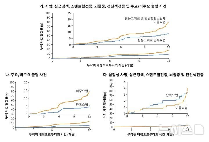 연구팀은 2020년 4월부터 2023년 5월까지 스텐트 삽입을 받은 심방세동 환자를 무작위로 배정해 항응고제(아픽사반·리바록사반) 단독요법군과, 여기에 단일항혈소판제(클로피도그렐)를 추가한 이중요법군을 비교했다. 1년간 추적관찰 결과, 단독요법군의 주요·비주요 출혈 사건 발생률이 각각 2.3%, 2.9%로, 이중요법군(각 6.1%, 7.1%) 대비 현저히 낮았다. 허혈성 사건(사망, 심근경색, 스텐트혈전증, 뇌졸중 등) 발생에는 두 집단 간 유의미한 차이가 없어, 단독요법의 안전성과 치료 효율이 입증됐다는 게 연구진의 설명이다.