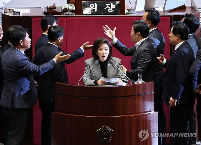 정기국회 마지막 날 여야 갈등이 필리버스터를 둘러싸고 폭발했다. 국민의힘 나경원 의원의 발언을 우원식 국회의장이 두 차례 중단시키자 고성과 항의가 뒤엉키며 본회의장이 극한 대치의 장으로 변했다.