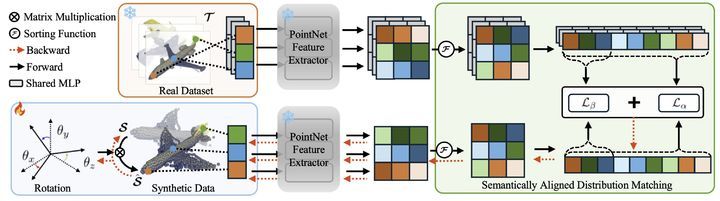 연구팀은 이 같은 구조적 난제를 해결하기 위해 두 가지 핵심 요소를 결합한 새로운 데이터 증류 프레임워크를 설계했다. 첫 번째는 순서가 뒤섞인 점 데이터의 의미 구조를 자동으로 정렬해주는 손실 함수 SADM이다. 이 함수는 포인트 클라우드의 특징 공간에서 원본과 요약 데이터 간 거리를 계산할 때 점 하나하나를 직접 대응시키지 않고, 의미적 패턴 단위로 정렬해 비교하도록 유도한다. 그 결과 순서가 제각각인 점 구름에서도 안정적인 특징 매칭이 가능해진다.