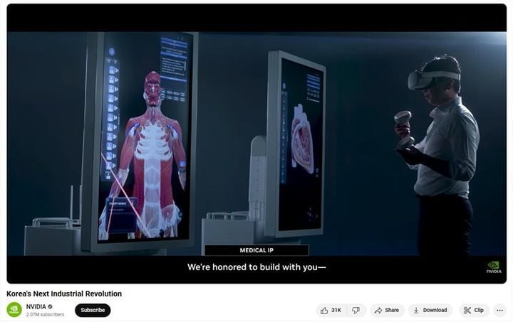 엔비디아는 지난달 31일 공식 유튜브 채널에 한국의 AI 산업 혁신을 조명하는 ‘한국의 차세대 산업혁명’ 영상을 공개했다. 해당 영상에서 메디컬아이피는 삼성, 현대차 등 국내 대기업들과 함께 언급되며, 의료 분야에서는 유일한 파트너 기업으로 포함됐다. 메디컬아이피 측은 영상 출연 사실을 사전 공유받지 못한 상태였고, 영상 공개 후 엔비디아 측에서 축하 메시지를 전달해 왔던 것으로 알려졌다. 업계에서는 엔비디아가 중장기 AI 생태계 전략 속에서 의료 디지털트윈을 전략 축 가운데 하나로 본 신호로 해석하는 분위기다.