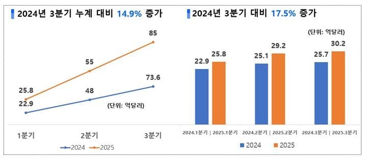 K-화장품 수출이 사상 최대 기록을 연이어 경신하며 글로벌 시장 입지를 공고히 하고 있다. 식품의약품안전처에 따르면 올해 3분기 한국 화장품 수출은 85억 달러(약 11조9100억원)에 달해 전년 동기 대비 14.9% 증가했다. 이는 지난 2023년 연간 수출액을 9개월 만에 돌파한 수치며, 3분기 단일 실적 역시 30억2000만 달러(약 4조2300억원)로 역대 분기 최고치를 기록했다. 업계는 미국이 5년 새 2배 이상의 성장세를 보이며 수출국 1위로 올라선 점에 특히 주목하고 있다.