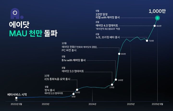 “AI 비서 생태계 확대”…SK텔레콤, 에이닷 이용자 1000만 돌파로 대중화 신호