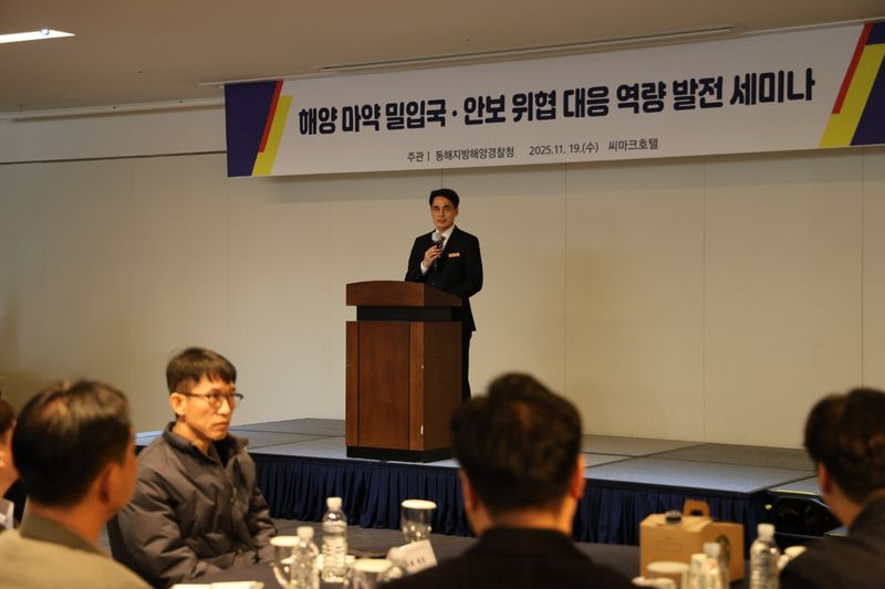 동해지방해양경찰청은 19일 강원도 강릉시 씨마크호텔에서 해양에서의 마약 밀수·밀입국·안보 위협 대응 역량 강화를 주제로 관계기관 합동 세미나를 열었다. 세미나에는 동해지방해양경찰청을 비롯해 국가정보원, 출입국 당국, 세관, 육군, 해군 등 관계 기관 관계자 50여 명이 참석했다.