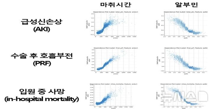 기존 수술 환자 40%가 경험하는 주요 합병증은 입원기간 장기화와 의료비 증가, 삶의 질 저하로 이어져 의료진과 환자 모두에 부담으로 작용했다. 하지만 다중 예측 AI 모델 도입으로 고위험군 환자 조기 식별, 중환자실 자원 효율화, 환자 맞춤 의사결정 지원 등 임상적 실효성이 기대된다는 분석이다. 연구진은 샤플리 가산 설명법(SHAP)을 적용한 결과, ‘마취 시간’의 길이와 ‘혈중 알부민 농도’가 세 합병증 모두에서 핵심 변수로 작동함을 확인했다.