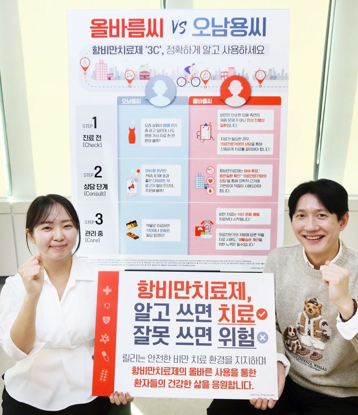 의료진 교육도 병행된다. 한국릴리는 대한비만학회와 협력해 의사, 간호사 등 의료전문가를 대상으로 인크레틴 기반 비만·당뇨 치료제의 적정 처방, 환자 선별 기준, 모니터링 방법 등을 다루는 교육 프로그램을 운영하고 있다. 동시에 의료진과 환자가 진료 현장에서 바로 활용할 수 있는 설명서를 개발해 병의원에 배포했다. 이 설명서에는 약물 투여 전후 확인해야 할 사항, 복용법, 생활습관 관리 병행 필요성 등이 담겨, 개별 진료실에서의 커뮤니케이션 부담을 줄여주는 효과도 기대되고 있다.
