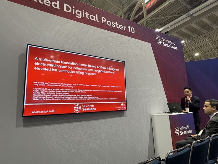 메디컬에이아이는 7일부터 10일까지 미국 뉴올리언스에서 열린 AHA 2025에서 5건의 좌장 진행 디지털 포스터와 2건의 포스터로 AI 기반 심전도 분석 연구 결과를 공개했다. 이 중 자체 개발한 'AiTiA' 플랫폼을 활용해 스마트워치로 측정한 심전도 신호를 분석, AI-ECG로 심부전 및 좌심실 충만압 상승 진단, 재입원 위험 예측, 설명 가능한 AI 개발 등 임상 적용 가능성을 다방면에서 입증했다.
