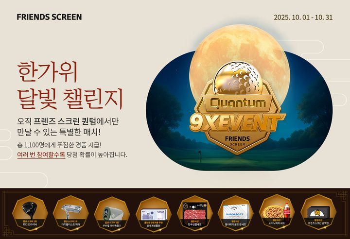 프렌즈 스크린 퀀텀(Q)이 스크린골프 시장에서 실감형 IT기술로 주목받고 있다. 카카오 VX는 추석 명절을 맞아 자체 기술력을 적용한 ‘프렌즈 스크린 퀀텀(Q)’ 시스템에서 ‘퀀텀 9X 한가위 달빛 챌린지’ 전국 대회를 8월 31일까지 개최한다. 스크린골프 업계는 이번 대회를 ‘실내 골프시장 엔터테인먼트 경쟁의 분기점’으로 평가한다.
