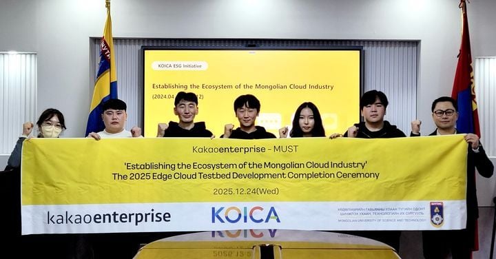 카카오엔터프라이즈는 29일 몽골 국립과학기술대학교 내 엣지 클라우드 테스트베드 구축을 마치고 상용 수준의 동작 검증까지 완료했다고 밝혔다. 이번 사업은 코이카가 추진하는 코이카 플랫폼 ESG 이니셔티브 업무 협약의 일환으로, 3년에 걸쳐 클라우드 인재 양성 교육, 엣지 클라우드 테스트베드 공동 개발, 몽골 클라우드 데이터센터 마스터플랜 수립 등을 단계적으로 진행하는 구조다.