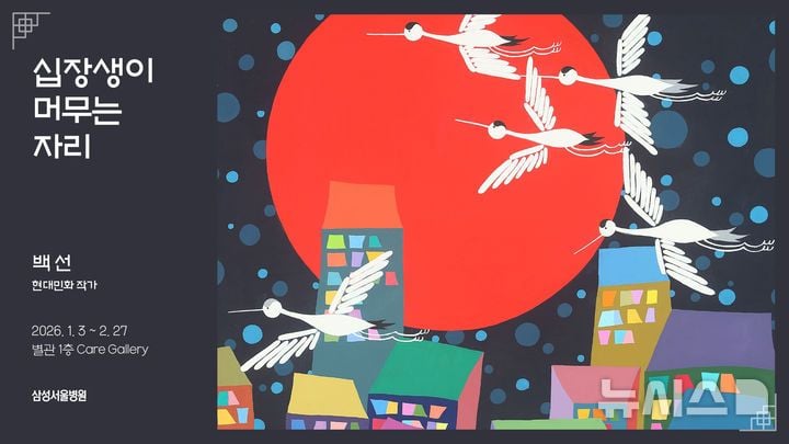 삼성서울병원은 1월 3일부터 2월 27일까지 별관 1층 SMC케어갤러리에서 백선 작가의 십장생이 머무는 자리 기획전을 연다. 2025 SMC 케어갤러리 대관 전시 작가 공모에서 제3기 네 번째 작가로 선정된 백선 작가의 전시로, 병원이 새해를 맞아 준비한 첫 기획이다. 전시 기간 동안 환자와 보호자, 의료진이 병원 일상 동선 속에서 자연스럽게 작품을 접하도록 설계했다.