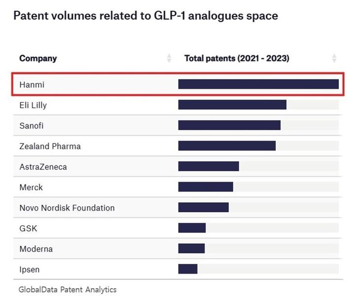 특허 경쟁력 강화는 한미그룹 전반으로도 확대되고 있다. 현재 한미그룹은 출원 중 1614건, 등록 2899건 등 총 4513건의 특허 포트폴리오를 보유하고 있으며, 글로벌 데이터 분석 기업의 자료에 따르면 2021~2023년 비만 및 대사 GLP-1 계열 분야에서도 세계 1위를 기록한 바 있다. 이는 신약부터 개량신약, 제네릭 의약품까지 다양한 포트폴리오를 보유한 한미약품만의 기술력과 IP 전략의 결과로 분석된다.