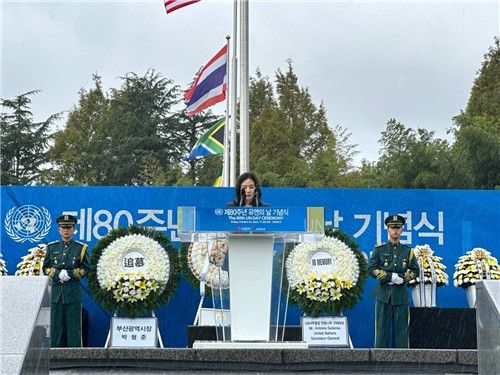 김진아 2차관은 유엔기념공원에서 진행된 공식 기념식에서 “유엔이 80년 전 전쟁의 참화를 딛고 국제평화와 인류 공영을 위해 창설됐다”고 강조했다. 이어 “한국전쟁 당시 인류애와 연대의 이름으로 한반도의 자유를 지킨 유엔군 참전용사의 희생에 깊은 경의를 표한다”고 말했다.