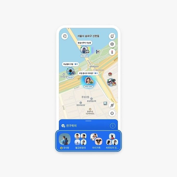 카카오에 따르면 12일 ‘친구위치’로 개편된 이번 카카오맵 업데이트는, 기존 15분~1시간 단위로 제공되던 위치 공유 시간을 해제하고 무제한 공유까지 가능하도록 바꿨다. 위치 공유를 켜면 사용자는 공유 종료 전까지 친구 혹은 그룹 내 참여자와 실시간 위치 변화를 확인할 수 있다. 이용자 편의 확대의 일환으로 ‘내 위치 숨기기’ 기능도 신설됐다. 이용자는 언제든 자신의 좌표 노출을 즉시 차단하거나 특정 시간대만 비공개로 예약해둘 수 있다. 카카오맵 내 이모티콘·말풍선 응답, 앱 내 간단 채팅 등 연동 기능도 강화했다.