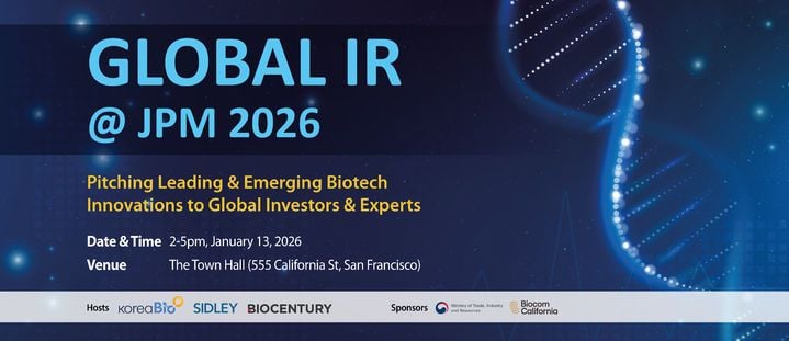 한국바이오협회가 주최하는 글로벌 IR @JPM 2026은 내년 1월 13일 미국 샌프란시스코 The Town Hall에서 개최된다. 행사에는 국내외 바이오 스타트업, 벤처, 중소기업을 비롯해 글로벌 벤처캐피탈 및 투자자들이 참가한다. 선정된 국내 기업들은 참가 투자자 앞에서 직접 피칭을 진행하고, 이후 Q&A 세션을 통해 투자자 피드백을 받는다. 이 프로그램은 시들리 오스틴, 바이오센추리가 공동 주최하며 산업통상부와 캘리포니아 바이오협회가 후원한다.